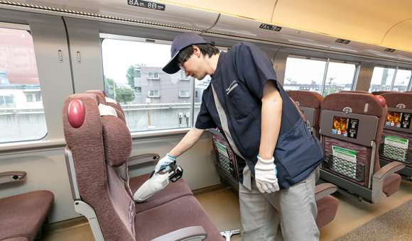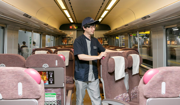現在は列車の車内清掃、列車の案内札の表示切替等を担当しております。