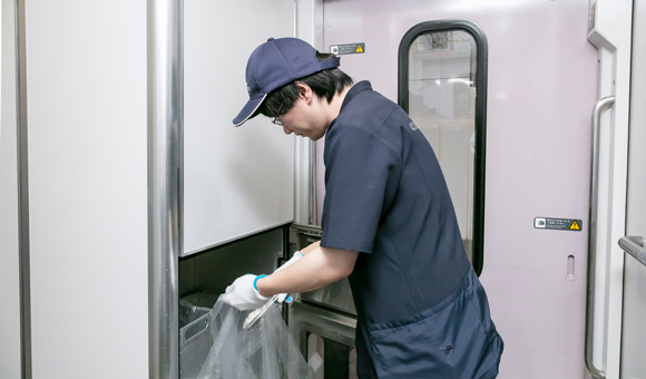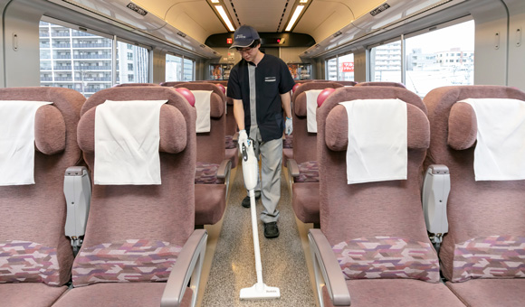 業務開始列車の遅れなど、状況に併せて列車内の清掃等を行います