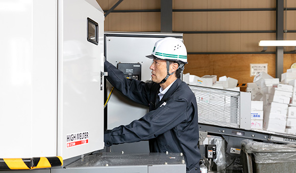 私はリサイクル工場の責任者として、主に作業工程や安全、品質管理の他、処理機械の保全、出荷計画、収支管理等の管理全般を行っています。