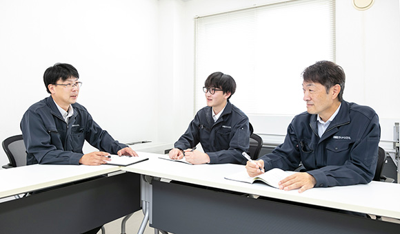 また印象に残っているエピソードはありますか工場の新設機械が突発的に故障したことがありました。当時は設置したばかりで機械に対して知識がまだ乏しく、本州に所在している機械メーカーの担当者と電話で、質疑応答と指示を受けながら、現地で部下と対応し、時間はかかりましたがなんとか復旧することができました。その時の経験が活きて、現在はまず、設置時には、機械メーカーと異常時の対応確認や故障の発生しやすい箇所などをしっかりと打ち合せし、機械稼働に支障が出ないよう知識の習得や予備部品の確保等、予防保全を心がけています。 -