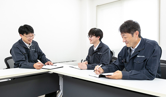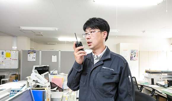 資源リサイクルセンターの運行管理Gは一人業務が多いため、会社に帰社後は当日にあったことや翌日の作業等を他の社員と話します。